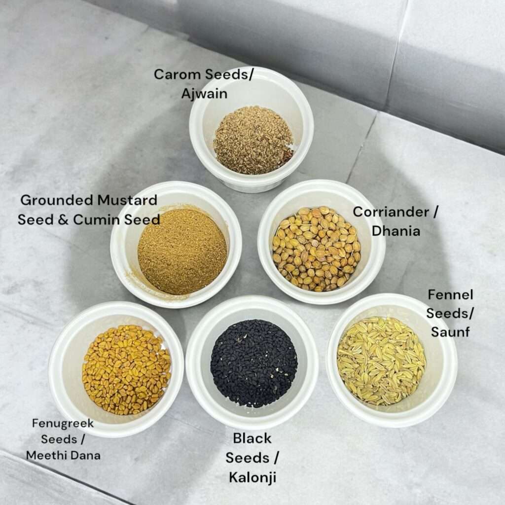 You might be wondering, “What exactly is that?” It’s essentially a blend of few seeds and spices that aren’t commonly used in everyday recipes, but they’re definitely essential for making Achar.
