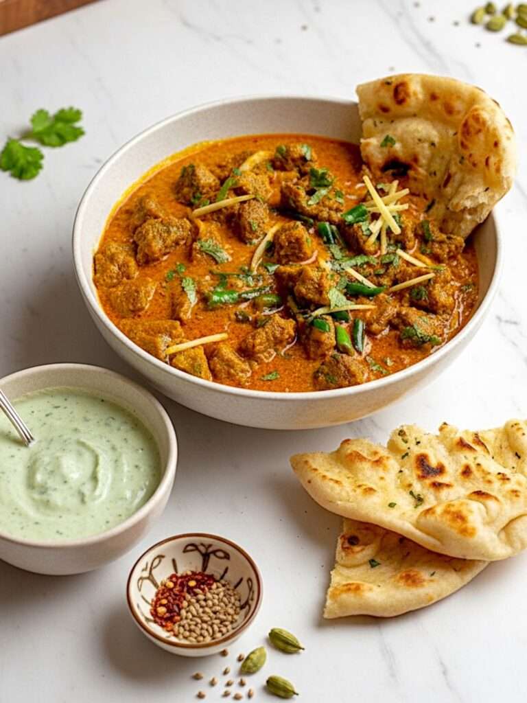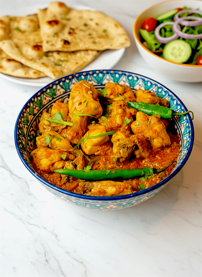 Adding a side of chutney, tamatar or tangy tamarind, gives the meal an extra kick of flavor, while a fresh salad made with cucumbers, tomatoes, and onions provides a nice crunchy balance.