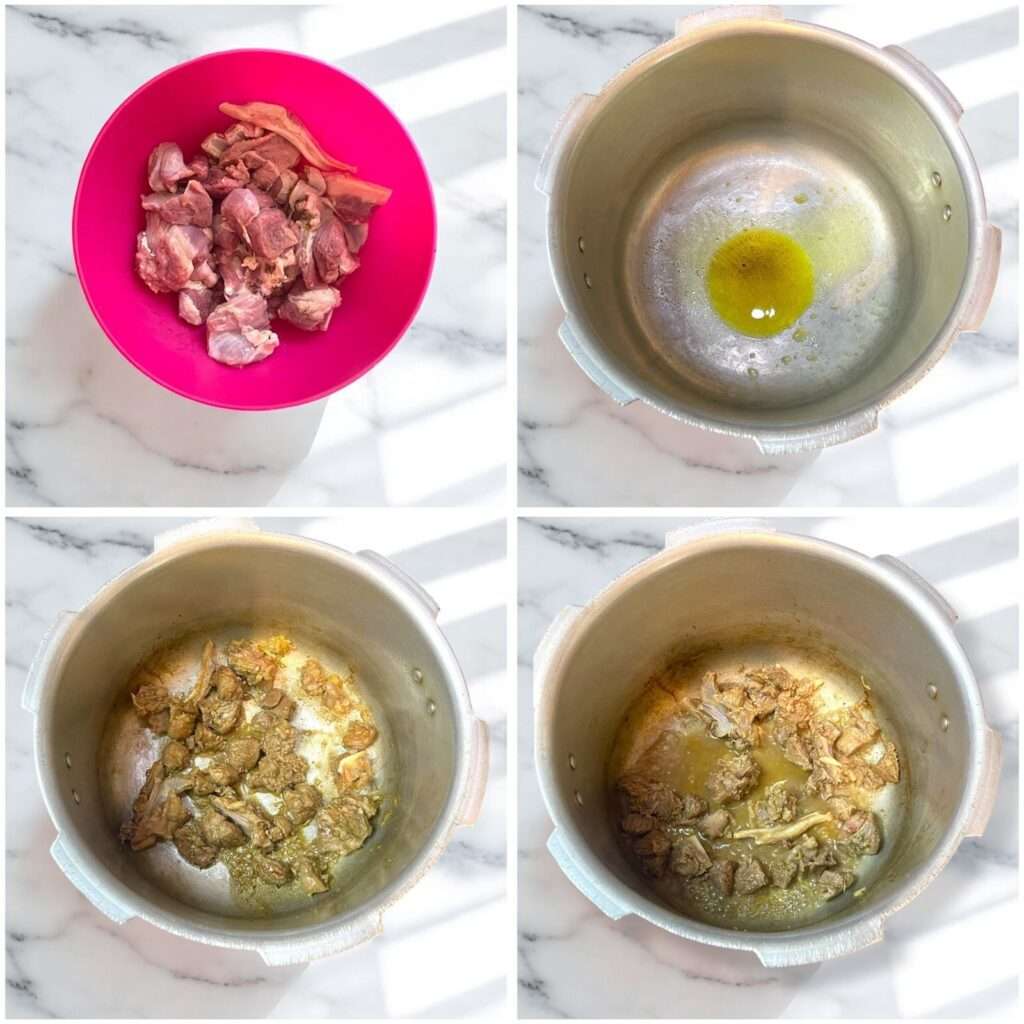 Since I’m using a pressure cooker to save time, let me explain how you can make this recipe in a regular pot (karahi, as we say in Urdu). The process is almost the same, with just a slight difference in the amount of water and cooking time.