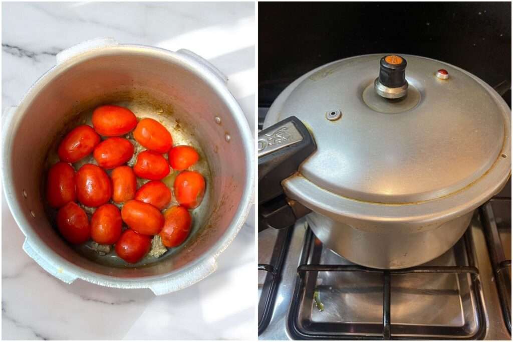 • Once you pressure cook the tomatoes, it’s better to peel off the skins. This step will give your gravy a smoother texture and a much richer taste.